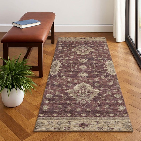 Mayfield Premium Machine Washable Abstract AMF1739 Burgundy 2 ft. 3 in. x 7 ft. 6 in. Runner Rug