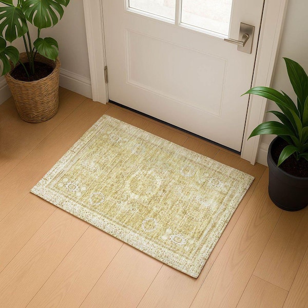 Mayfield Premium Machine Washable Abstract AMF1740 Beige 2 ft. x 3 ft. Area Rug