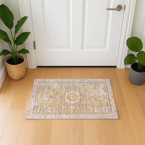 Mayfield Premium Machine Washable Abstract AMF1740 Gold 2 ft. x 3 ft. Area Rug