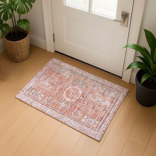 Mayfield Premium Machine Washable Abstract AMF1740 Orange 2 ft. x 3 ft. Area Rug