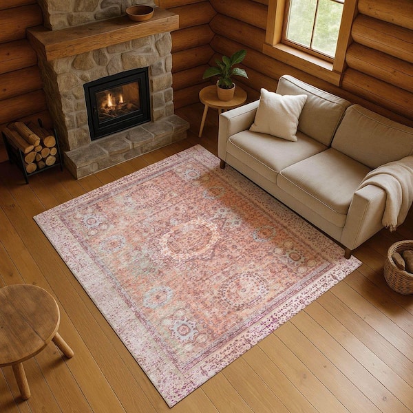 Mayfield Premium Machine Washable Abstract AMF1740 Orange 3 ft. x 5 ft. Area Rug