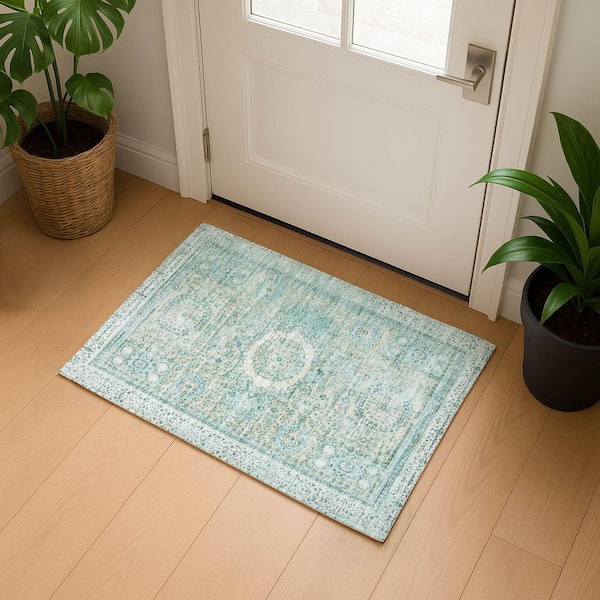 Mayfield Premium Machine Washable Abstract AMF1740 Turquoise 2 ft. x 3 ft. Area Rug