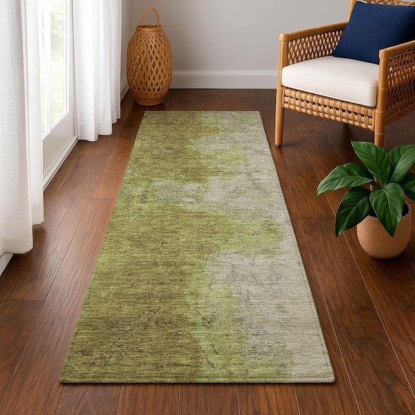 Mayfield Premium Machine Washable Abstract AMF1741 Olive 2 ft. 3 in. x 7 ft. 6 in. Runner Rug