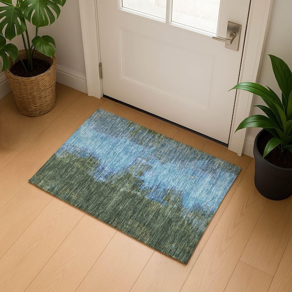Mayfield Premium Machine Washable Abstract AMF1742 Cactus 2 ft. x 3 ft. Area Rug