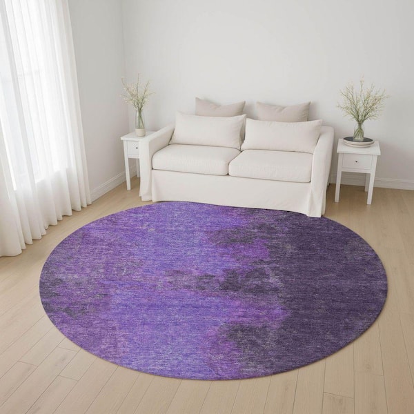 Mayfield Premium Machine Washable Abstract AMF1742 Eggplant 8 ft. x 8 ft. Round Rug