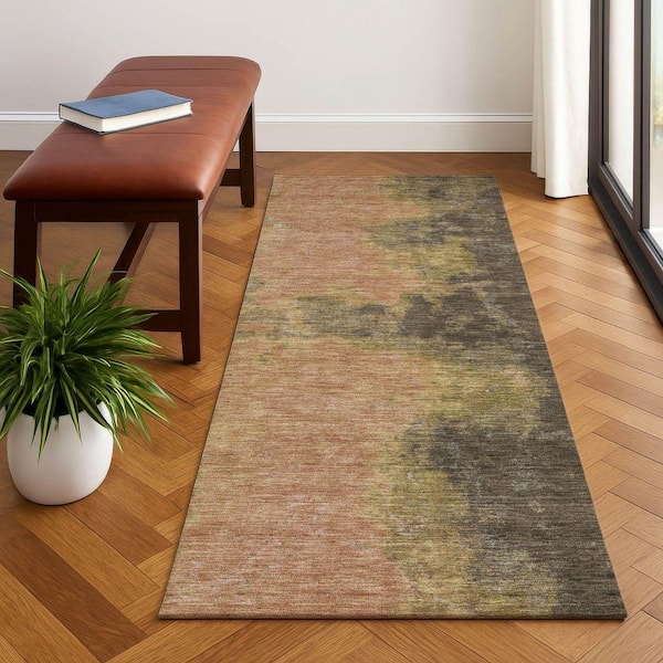 Mayfield Premium Machine Washable Abstract AMF1742 Fudge 2 ft. 3 in. x 7 ft. 6 in. Runner Rug