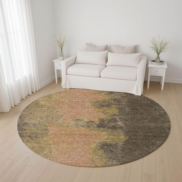 Mayfield Premium Machine Washable Abstract AMF1742 Fudge 8 ft. x 8 ft. Round Rug
