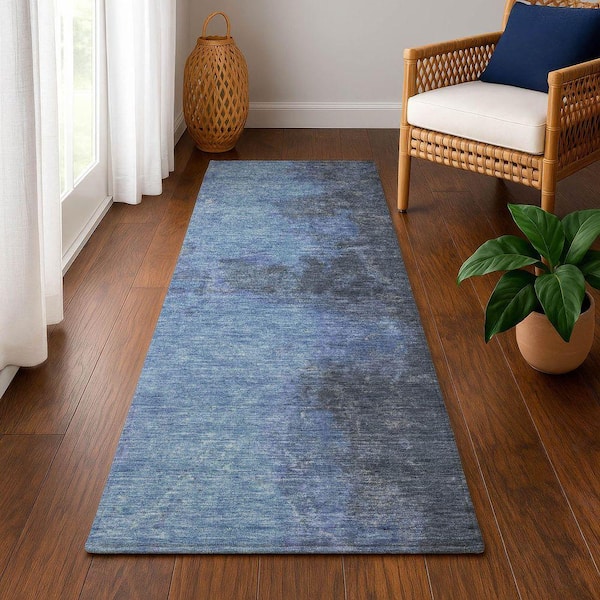 Mayfield Premium Machine Washable Abstract AMF1742 Navy 2 ft. 3 in. x 7 ft. 6 in. Runner Rug