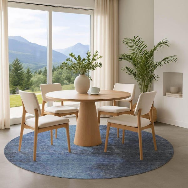 Mayfield Premium Machine Washable Abstract AMF1742 Navy 8 ft. x 8 ft. Round Rug