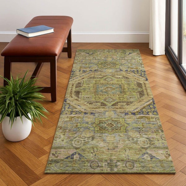 Mayfield Premium Machine Washable Abstract AMF1743 Aloe 2 ft. 3 in. x 7 ft. 6 in. Runner Rug