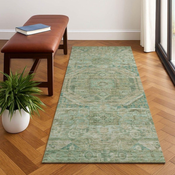 Mayfield Premium Machine Washable Abstract AMF1743 Sage 2 ft. 3 in. x 7 ft. 6 in. Runner Rug