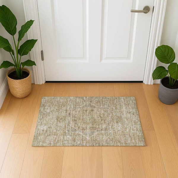 Mayfield Premium Machine Washable Abstract AMF1743 Tan 2 ft. x 3 ft. Area Rug