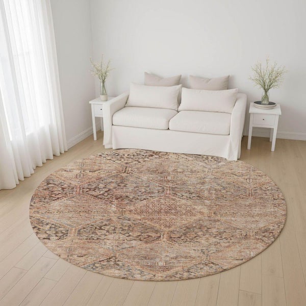 Mayfield Premium Machine Washable Abstract AMF1745 Copper 8 ft. x 8 ft. Round Rug