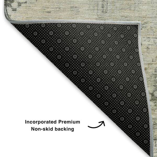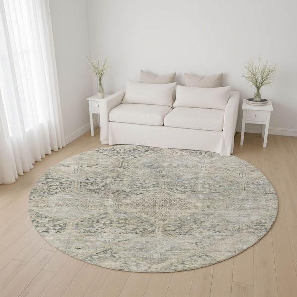Mayfield Premium Machine Washable Abstract AMF1745 Pewter 8 ft. x 8 ft. Round Rug