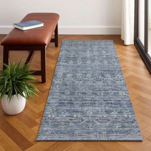 Mayfield Premium Machine Washable Abstract AMF1746 Blue 2 ft. 3 in. x 7 ft. 6 in. Runner Rug