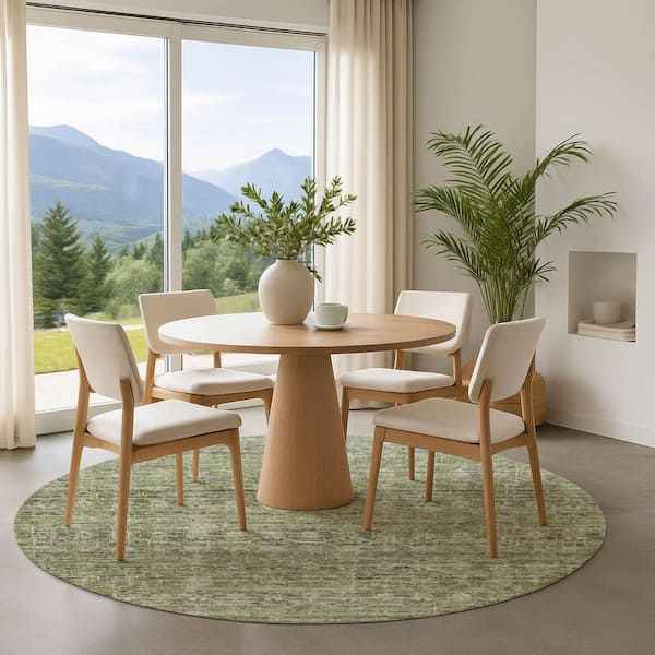 Mayfield Premium Machine Washable Abstract AMF1746 Green 8 ft. x 8 ft. Round Rug