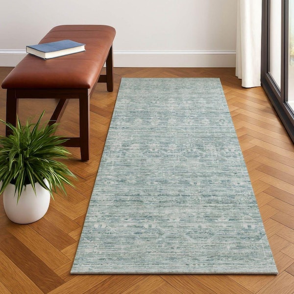 Mayfield Premium Machine Washable Abstract AMF1746 Turquoise 2 ft. 3 in. x 7 ft. 6 in. Runner Rug