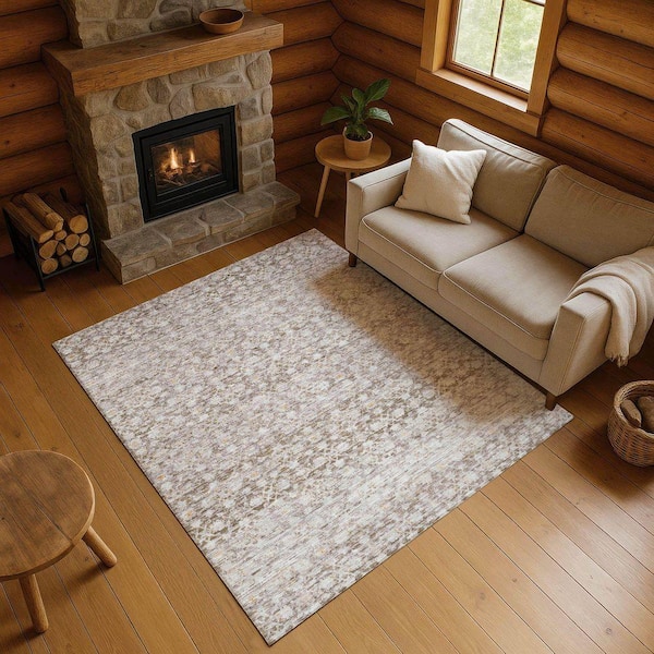 Mayfield Premium Machine Washable Abstract AMF1747 Taupe 8 ft. x 10 ft. Area Rug