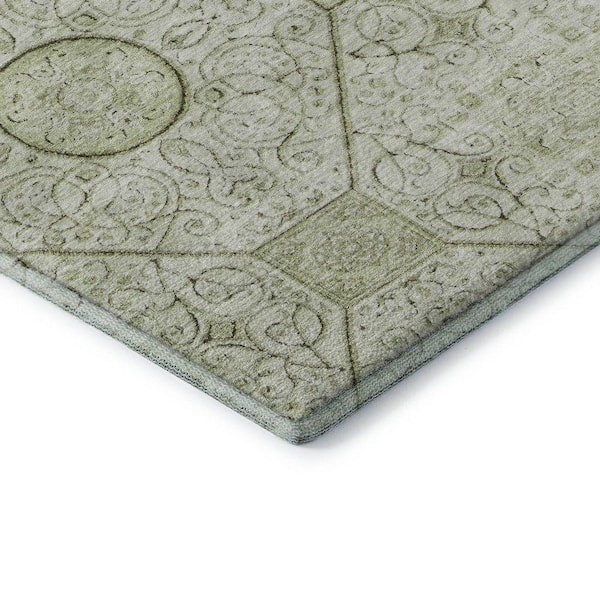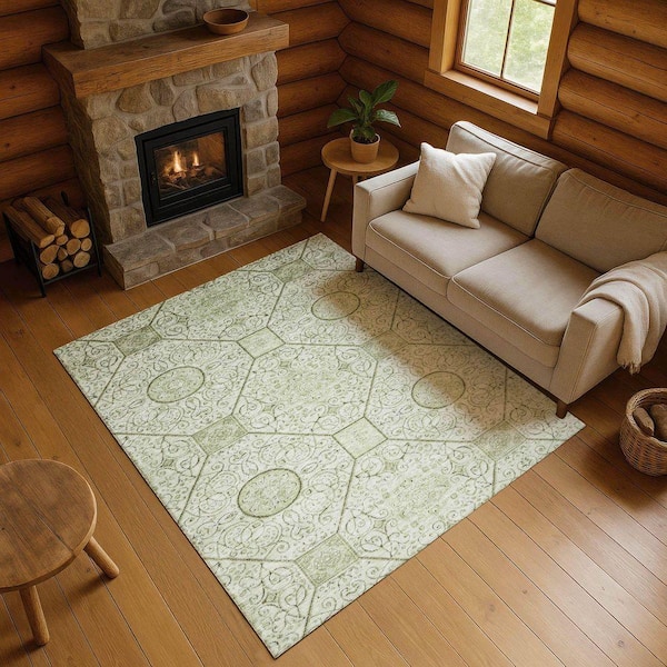 Mayfield Premium Machine Washable Abstract AMF1748 Aloe 3 ft. x 5 ft. Area Rug