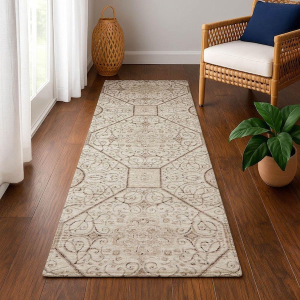 Mayfield Premium Machine Washable Abstract AMF1748 Beige 2 ft. 3 in. x 7 ft. 6 in. Runner Rug