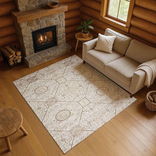 Mayfield Premium Machine Washable Abstract AMF1748 Beige 8 ft. x 10 ft. Area Rug