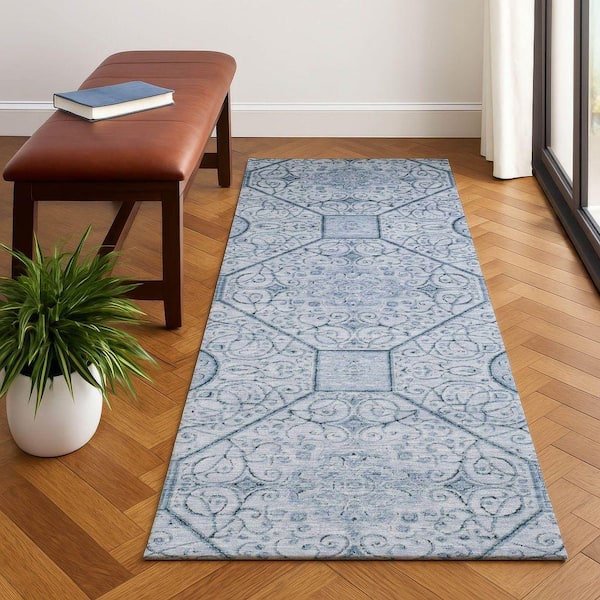 Mayfield Premium Machine Washable Abstract AMF1748 Blue 2 ft. 3 in. x 7 ft. 6 in. Runner Rug