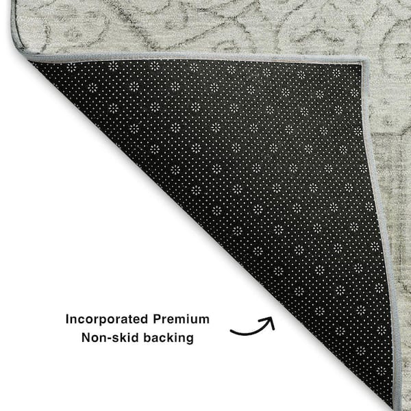 Mayfield Premium Machine Washable Abstract AMF1748 Silver 8 ft. x 8 ft. Round Rug