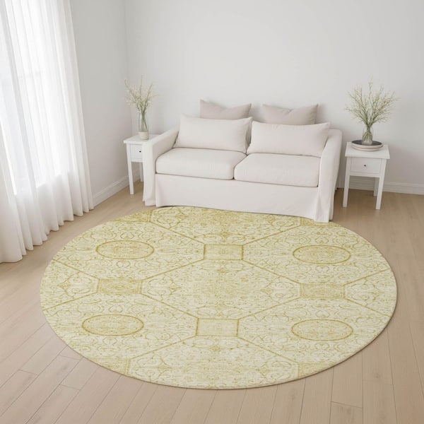 Mayfield Premium Machine Washable Abstract AMF1748 Wheat 8 ft. x 8 ft. Round Rug