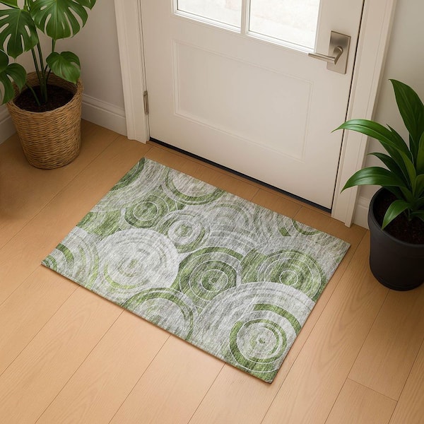 Mayfield Premium Machine Washable Abstract AMF1750 Aloe 2 ft. x 3 ft. Area Rug