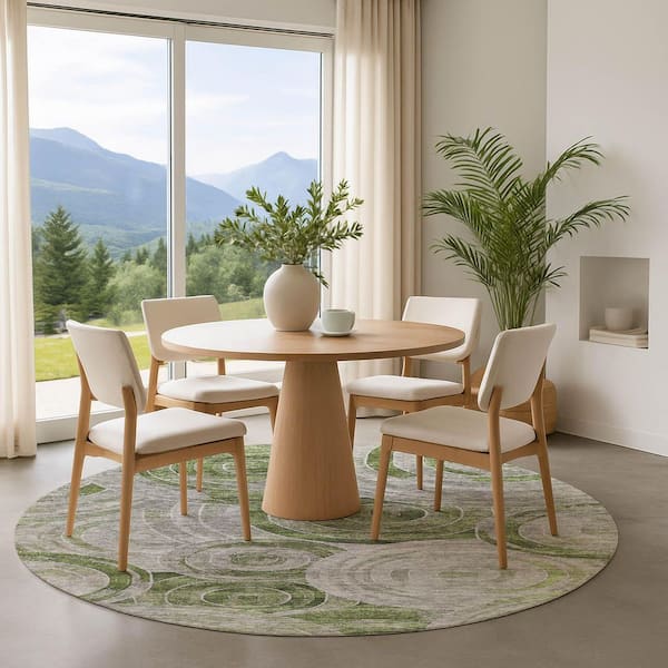 Mayfield Premium Machine Washable Abstract AMF1750 Aloe 8 ft. x 8 ft. Round Rug