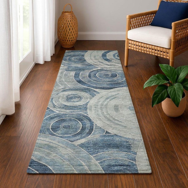 Mayfield Premium Machine Washable Abstract AMF1750 Blue 2 ft. 3 in. x 7 ft. 6 in. Runner Rug