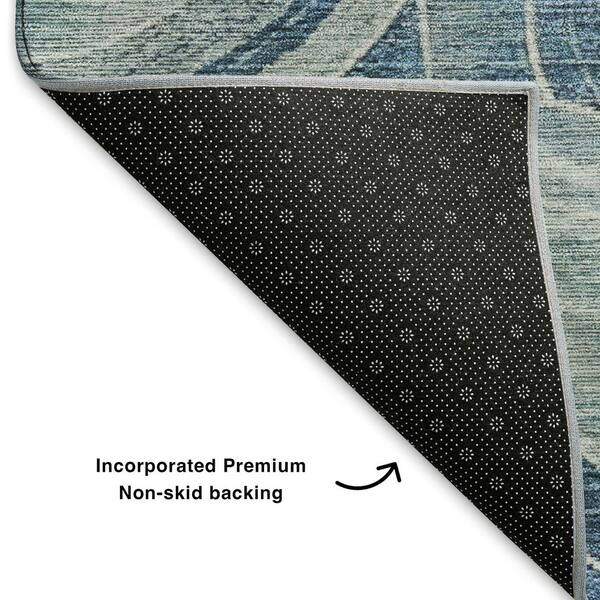 Mayfield Premium Machine Washable Abstract AMF1750 Blue 8 ft. x 8 ft. Round Rug