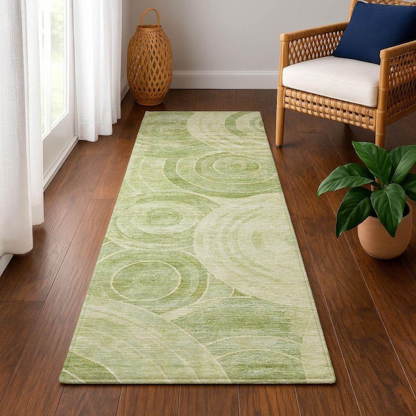 Mayfield Premium Machine Washable Abstract AMF1750 Sage 2 ft. 3 in. x 7 ft. 6 in. Runner Rug