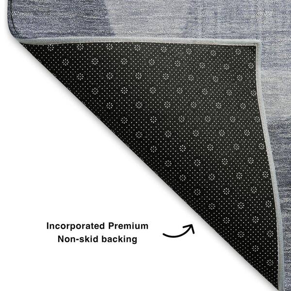 Mayfield Premium Machine Washable Abstract AMF1751 Denim 8 ft. x 8 ft. Round Rug
