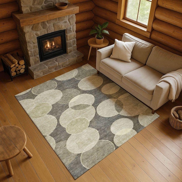Mayfield Premium Machine Washable Abstract AMF1751 Taupe 10 ft. x 14 ft. Area Rug