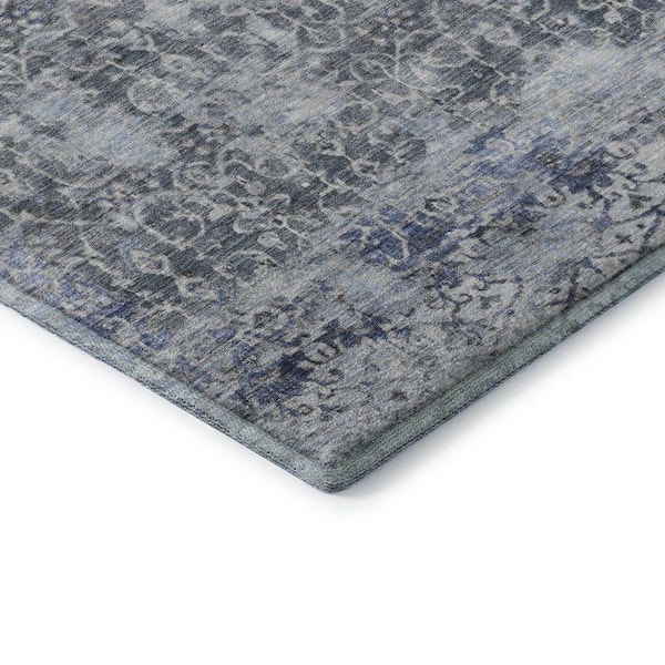 Mayfield Premium Machine Washable Abstract AMF1752 Denim 2 ft. 3 in. x 7 ft. 6 in. Runner Rug