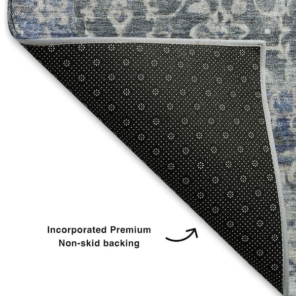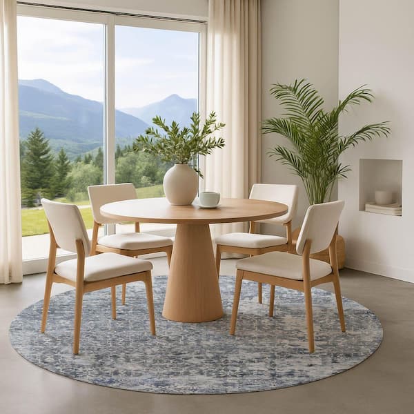 Mayfield Premium Machine Washable Abstract AMF1752 Denim 8 ft. x 8 ft. Round Rug