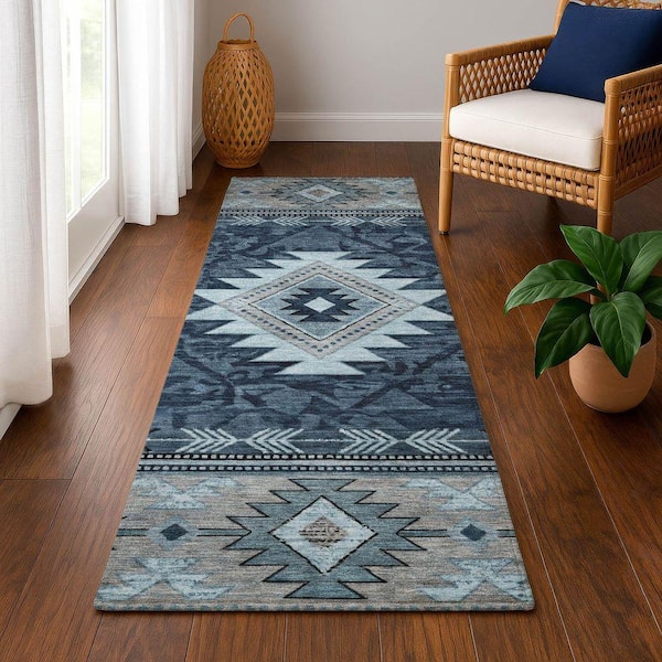 Mayfield Premium Machine Washable Abstract AMF1754 Blue 2 ft. 3 in. x 7 ft. 6 in. Runner Rug