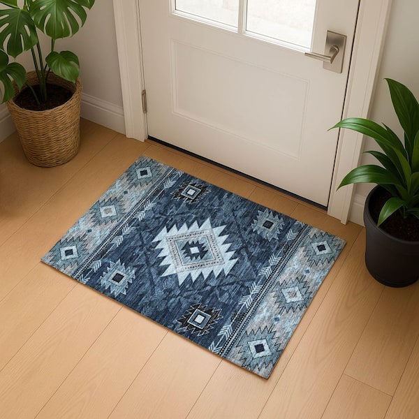 Mayfield Premium Machine Washable Abstract AMF1754 Blue 2 ft. x 3 ft. Area Rug