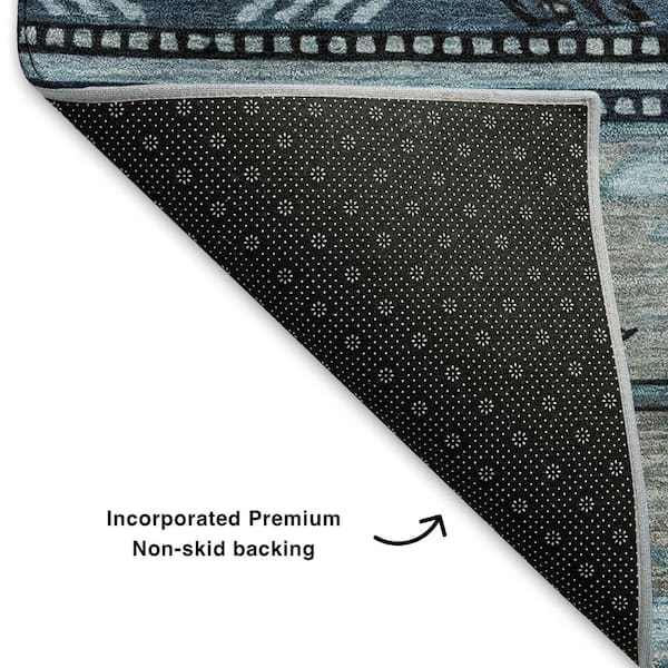 Mayfield Premium Machine Washable Abstract AMF1754 Blue 8 ft. x 8 ft. Round Rug