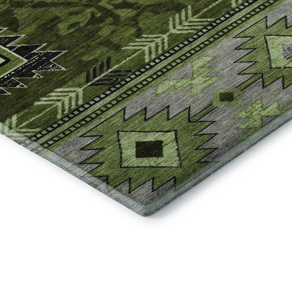 Mayfield Premium Machine Washable Abstract AMF1754 Olive 5 ft. x 7 ft. 6 in. Area Rug