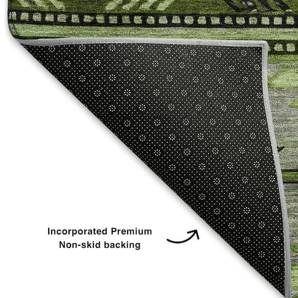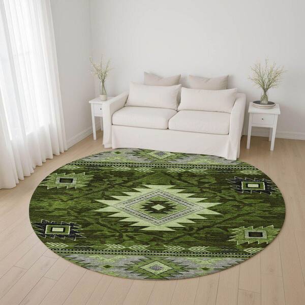 Mayfield Premium Machine Washable Abstract AMF1754 Olive 8 ft. x 8 ft. Round Rug