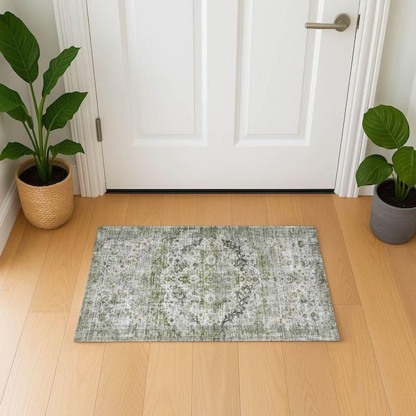 Mayfield Premium Machine Washable Abstract AMF1755 Aloe 2 ft. x 3 ft. Area Rug