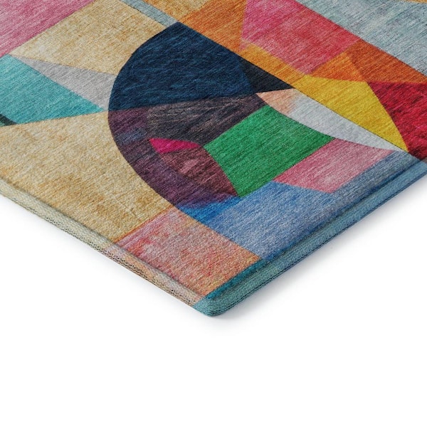 Mayfield Premium Machine Washable Abstract AMF1757 Blue 3 ft. x 5 ft. Area Rug