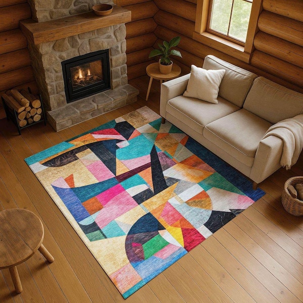 Mayfield Premium Machine Washable Abstract AMF1757 Blue 9 ft. x 12 ft. Area Rug