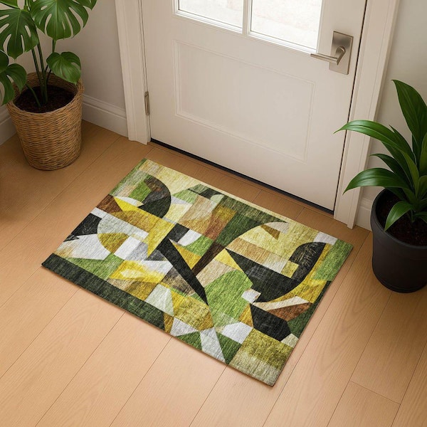 Mayfield Premium Machine Washable Abstract AMF1757 Green 2 ft. x 3 ft. Area Rug