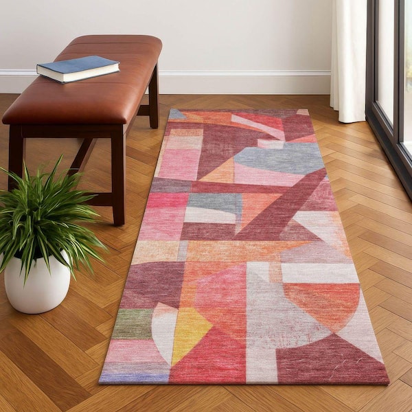 Mayfield Premium Machine Washable Abstract AMF1757 Paprika 2 ft. 3 in. x 7 ft. 6 in. Runner Rug