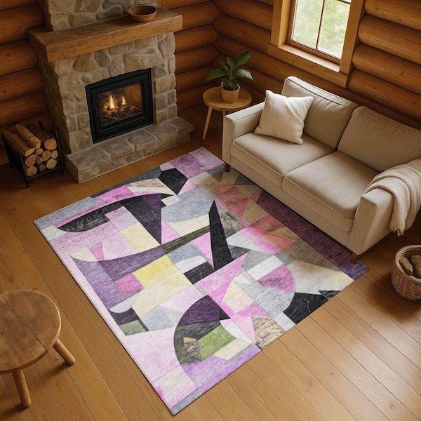 Mayfield Premium Machine Washable Abstract AMF1757 Purple 3 ft. x 4 ft. Area Rug