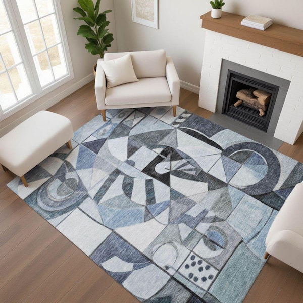 Mayfield Premium Machine Washable Abstract AMF1758 Denim 10 ft. x 14 ft. Area Rug