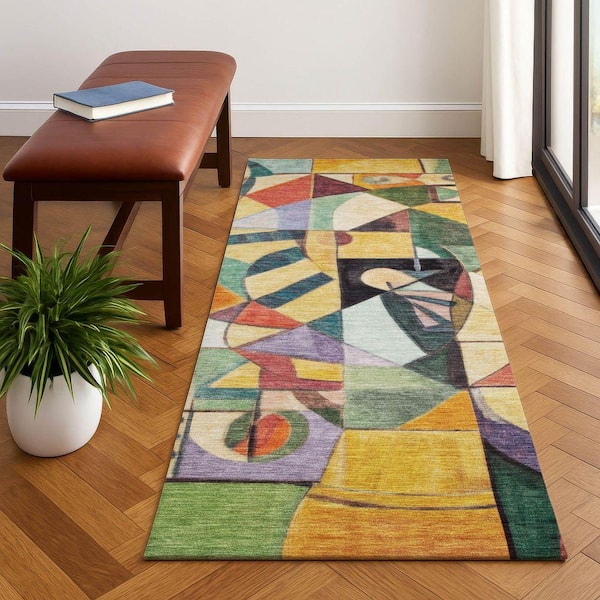Mayfield Premium Machine Washable Abstract AMF1758 Gold 2 ft. 3 in. x 7 ft. 6 in. Runner Rug